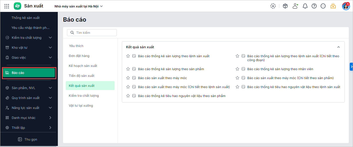 Bước 4: Xem thống kê sản xuất, báo cáo sản xuất