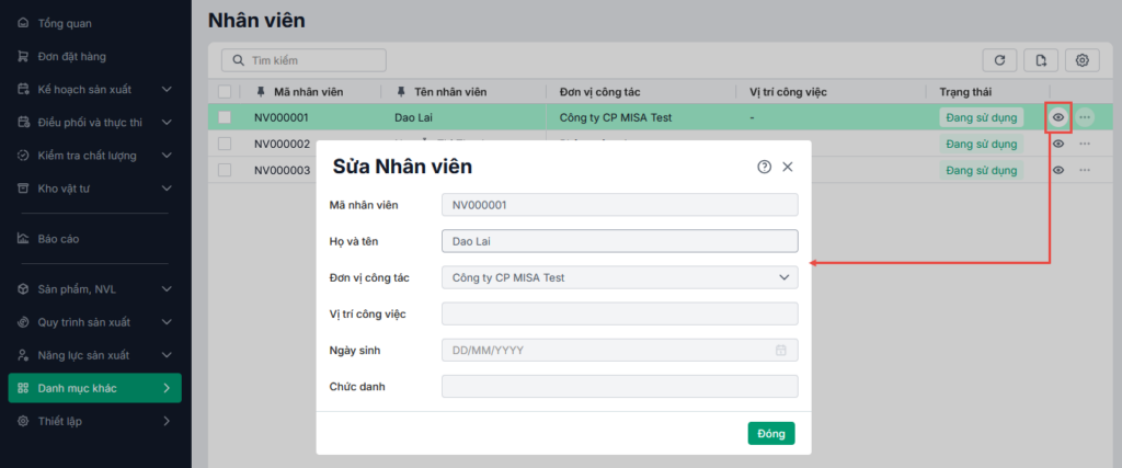 - Xem chi tiết thông tin nhân viên bằng cách nhấn biểu tượng xem.