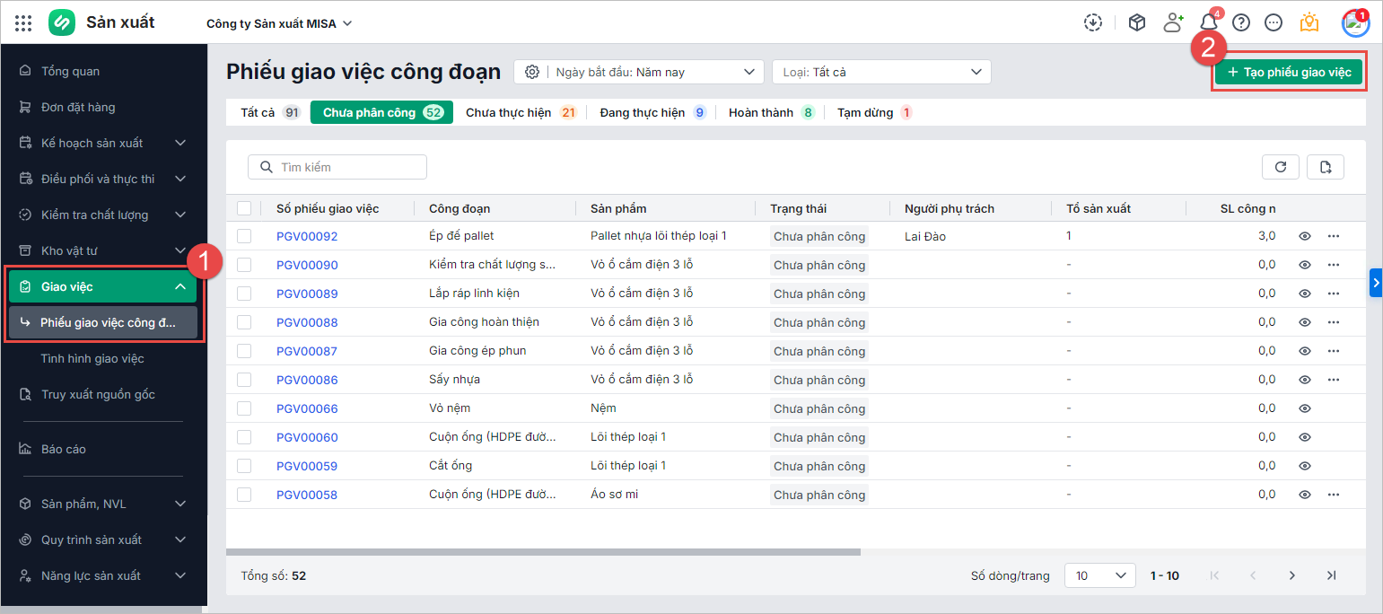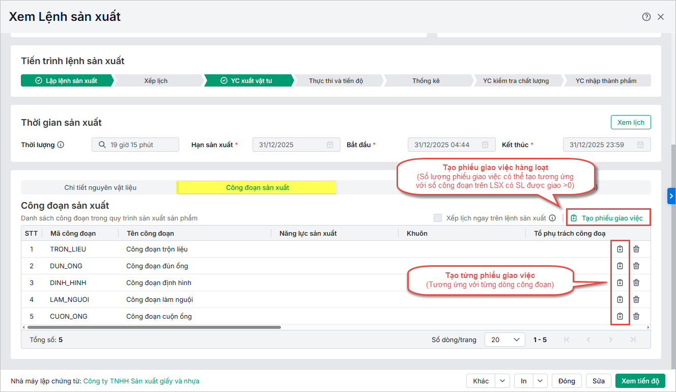 2.1. Tạo phiếu giao việc theo công đoạn sản xuất
