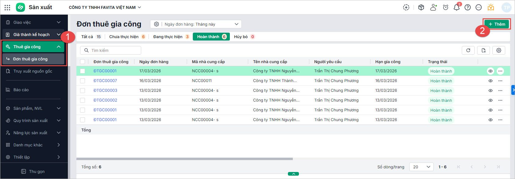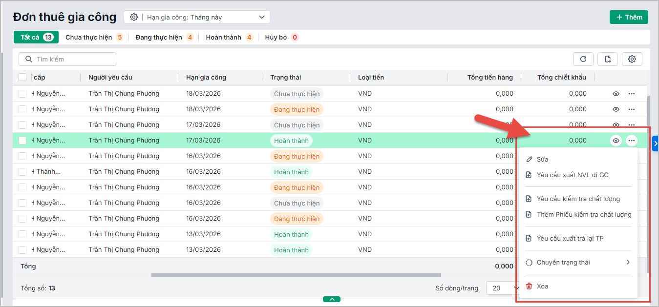 Lưu ý: Người dùng cần được phân quyền Phân hệ Thuê gia công thì mới thực hiện được các chức năng này.