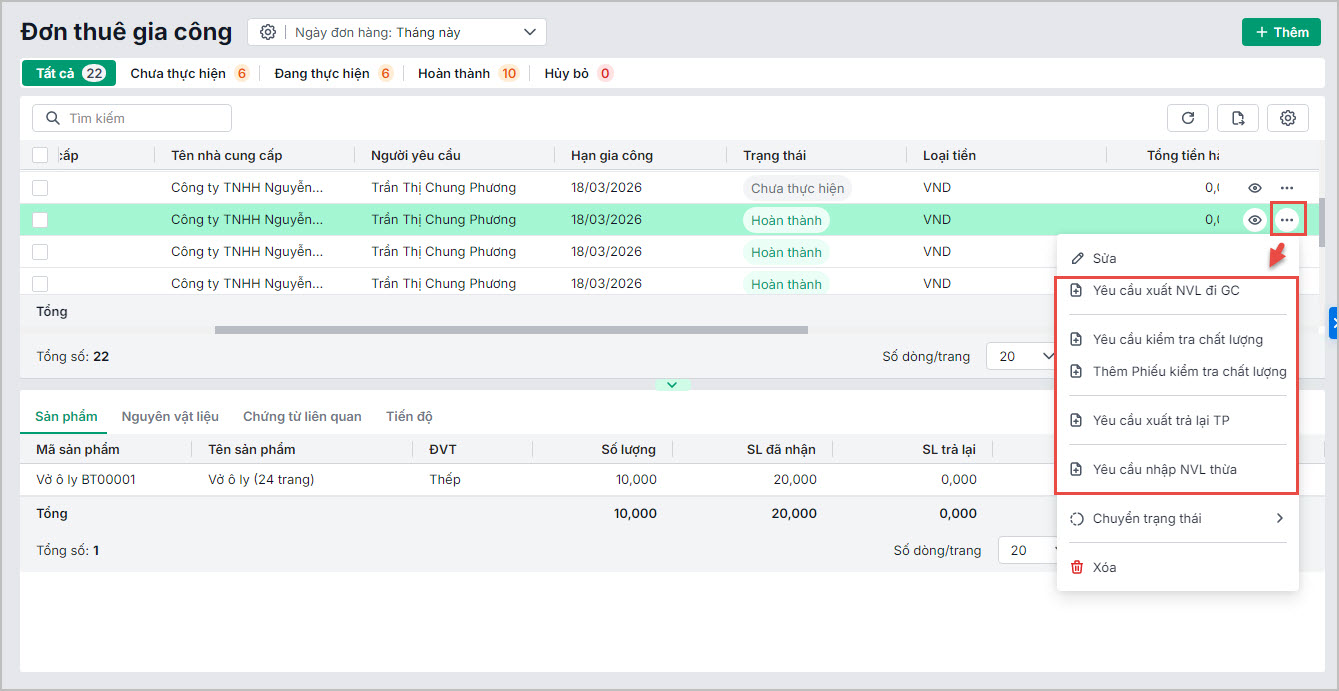 Bài viết hướng dẫn tính năng Quản lý đơn thuê gia công, cho phép doanh nghiệp quản lý, theo dõi, kiểm soát toàn bộ hoạt động thuê gia công giữa các doanh nghiệp một cách nhanh chóng và chính xác.