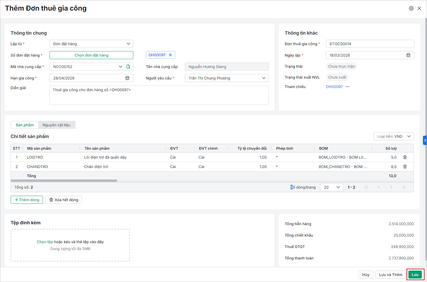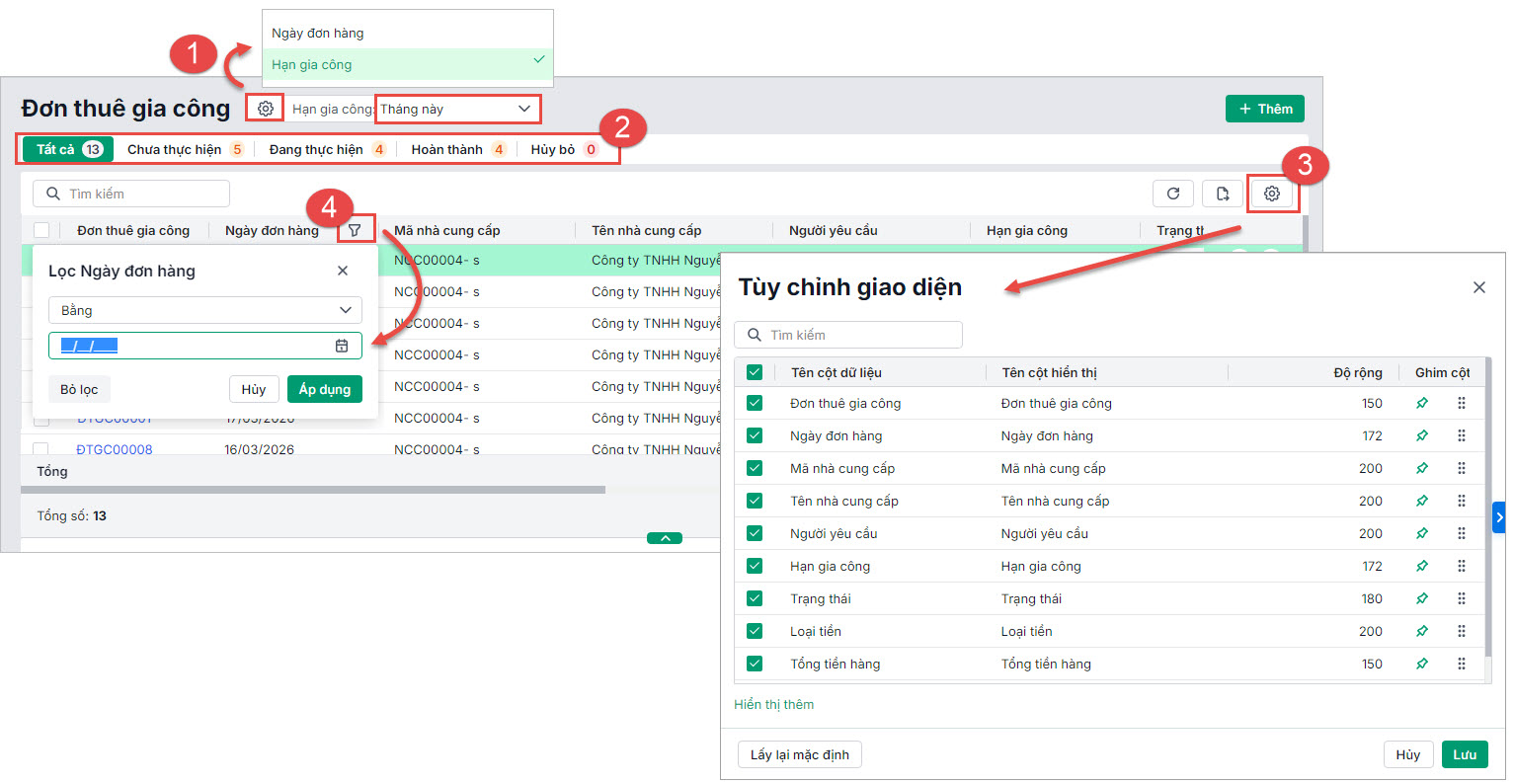 Nội dung bài viết bao gồm: Hướng dẫn chi tiết các bước thực hiện thiết lập và quản lý đơn thuê gia công.