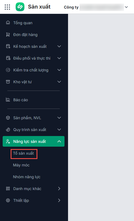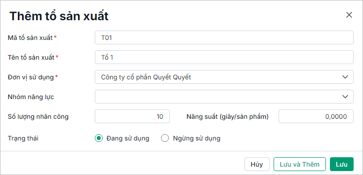 • Tại mục Năng lực sản xuất, chọn Tổ sản xuất: