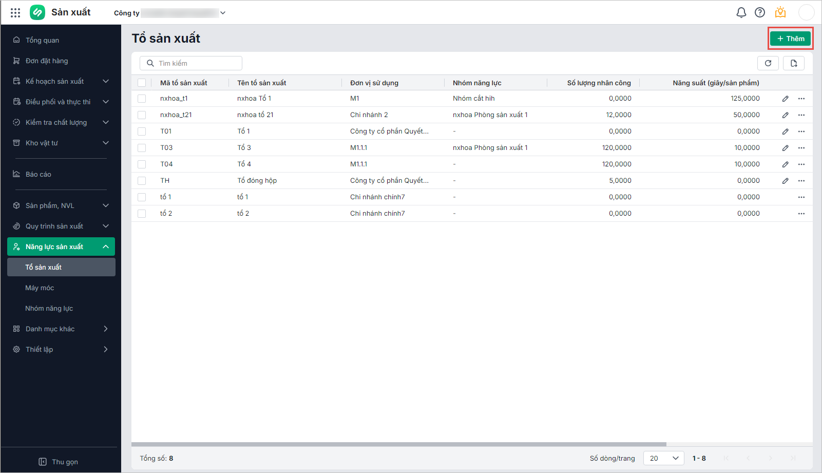 • Trên danh sách tổ sản xuất, nhấn Thêm:
