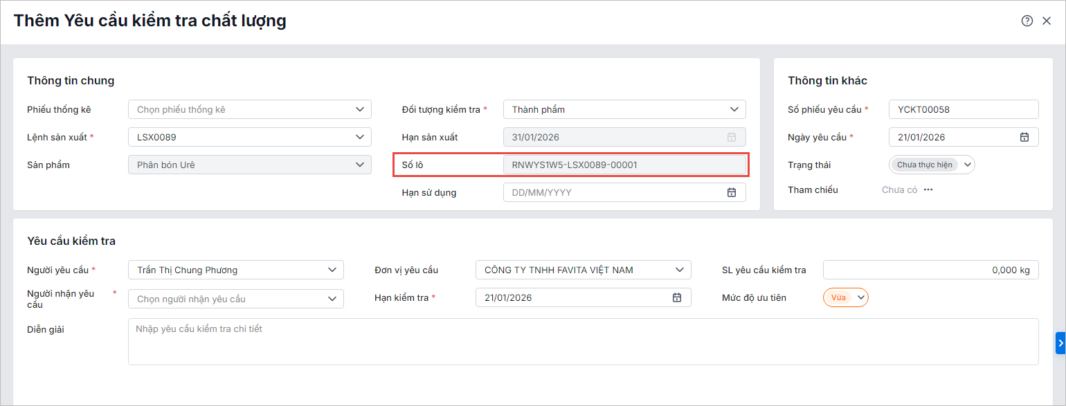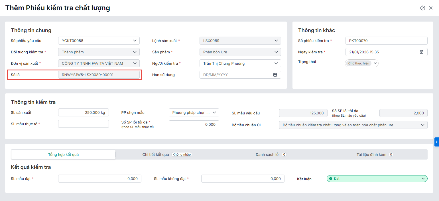 - Sản xuất Linh kiện điện tử, Vật liệu xây dựng: Quản lý chất lượng theo từng lô sản xuất.