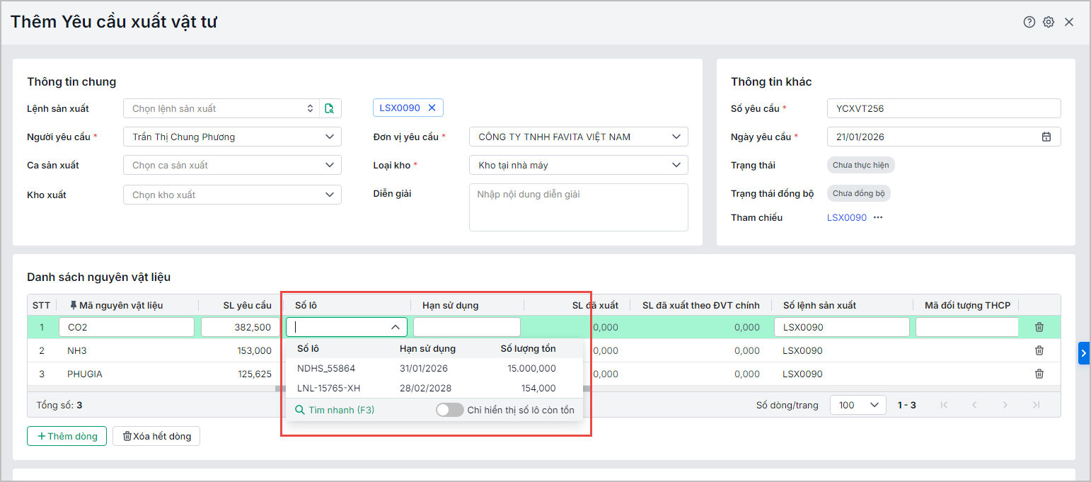 - Thao tác nhập liệu và quản lý số lô, hạn dùng trên chứng từ
