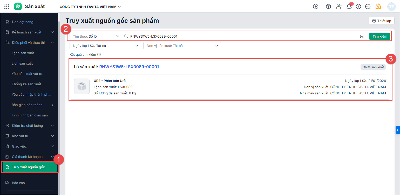 Lưu ý: Người dùng cần được phân quyền Phân hệ Truy xuất nguồn gốc thì mới thực hiện được các chức năng này.