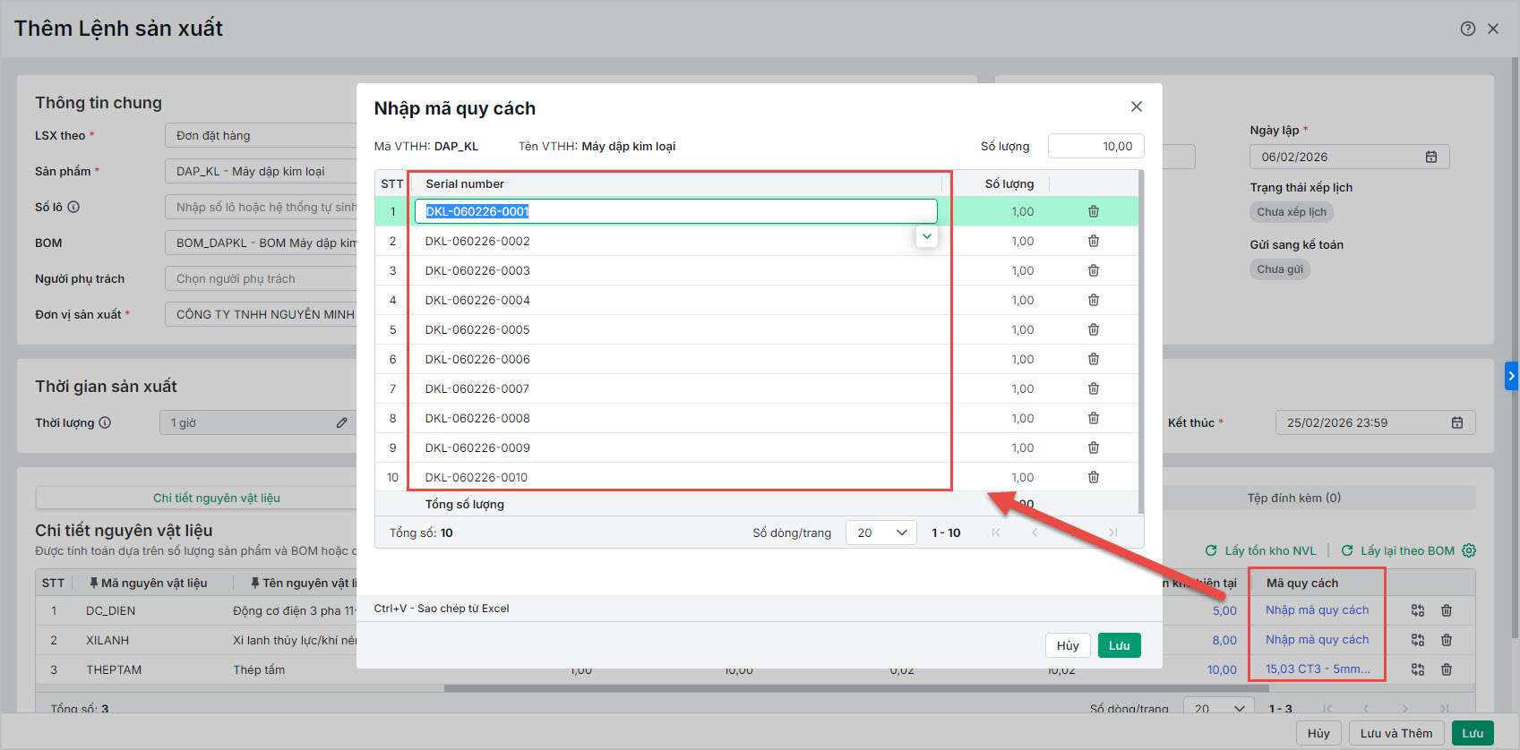 - Thao tác nhập liệu và quản lý mã quy cách/serial trên chứng từ.