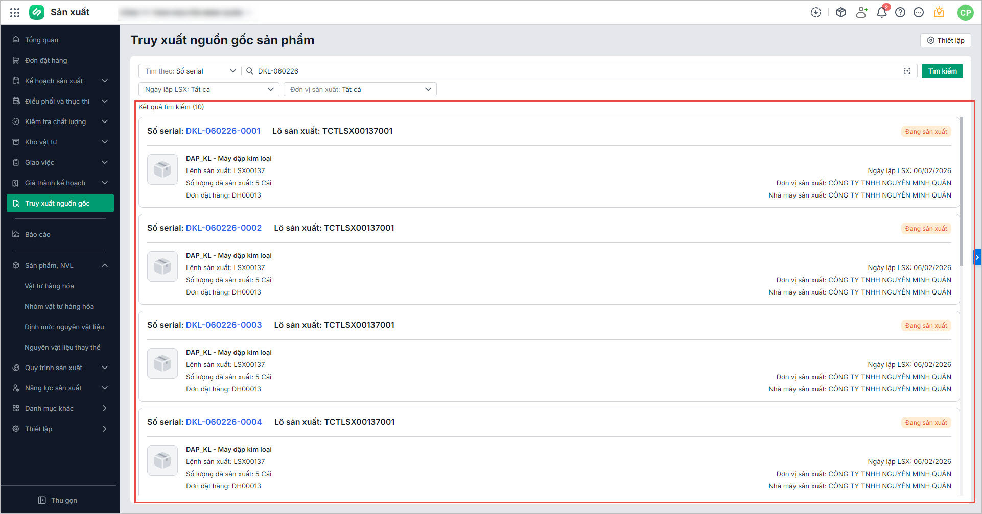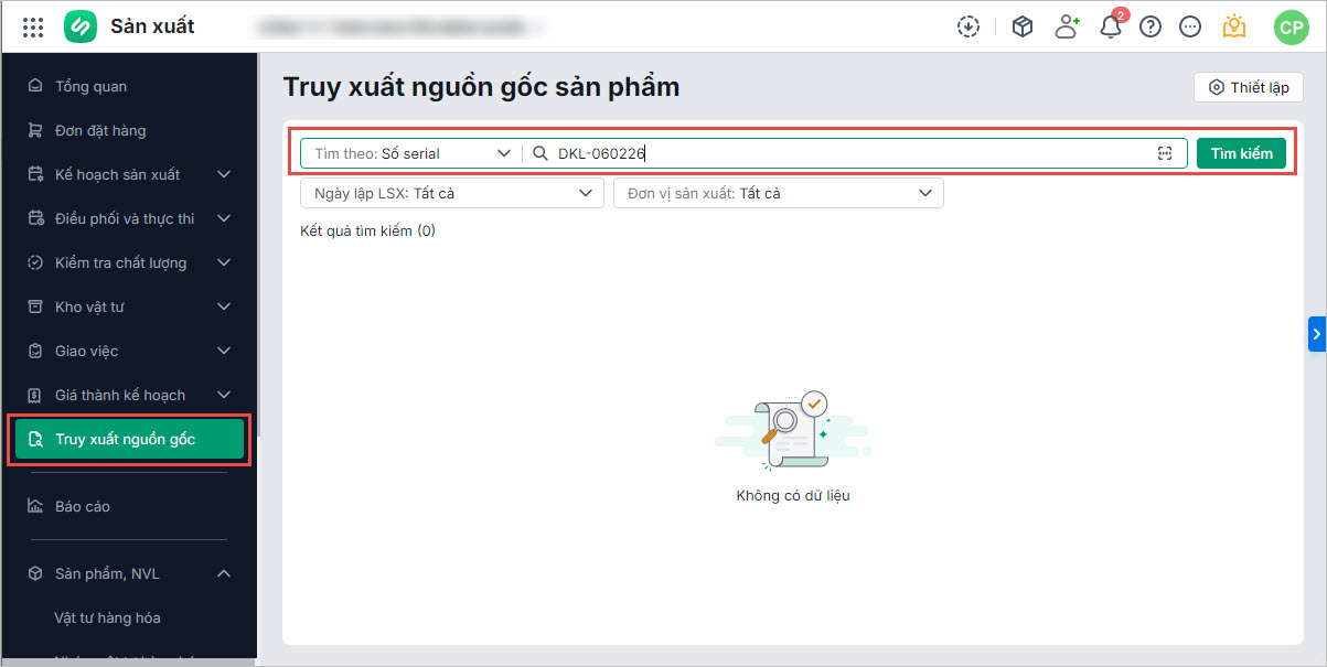 Mục đích bài viết: Chương trình cho phép doanh nghiệp quản lý truy xuất nguồn gốc theo Serial, dễ dàng truy xuất 2 chiều. Điều này giúp doanh nghiệp khoanh vùng ảnh hưởng một cách nhanh chóng và chính xác.