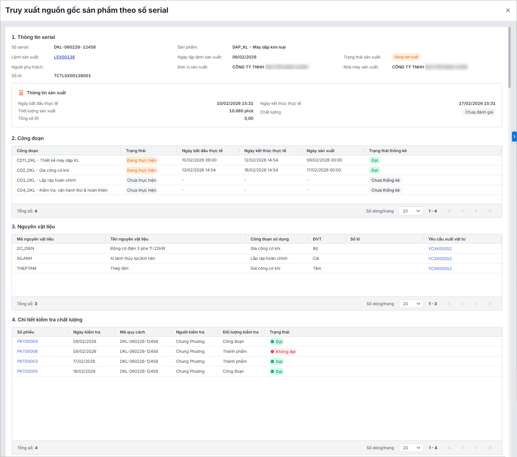 - Truy xuất nhanh nguồn gốc theo số serial, xuất báo cáo và hồ sơ nghiệm thu điện tử tức thì, xác định chính xác nguồn gốc của mọi vấn đề.