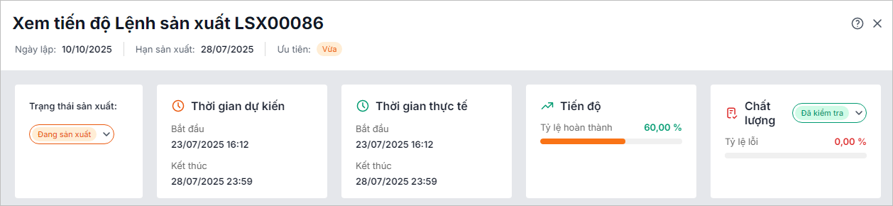 1. Xem tiến độ lệnh sản xuất 1 sản phẩm
