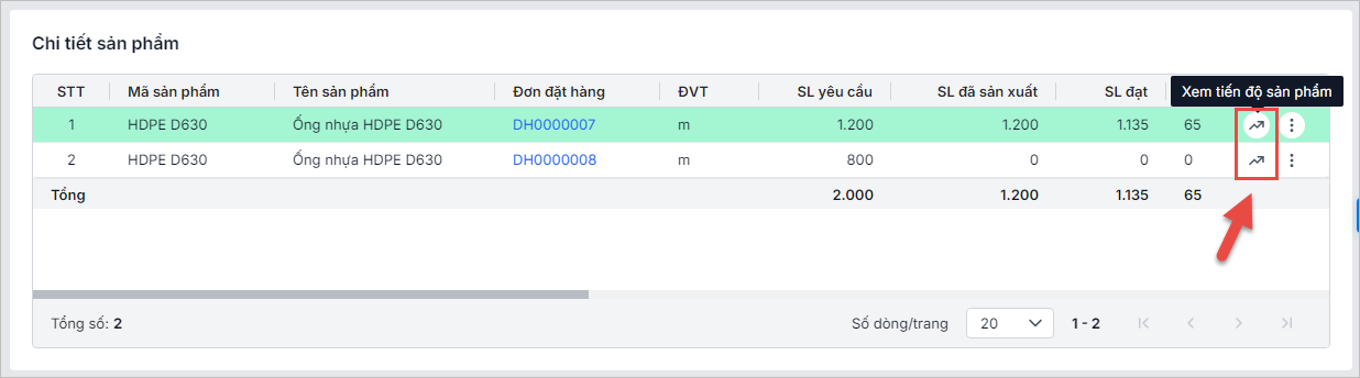 Bước 2: Xem chi tiết tiến độ thực hiện với từng sản phẩm