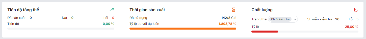 - Tiến độ tổng thể: cho biết tổng số lượng sản phẩm đã làm ra.