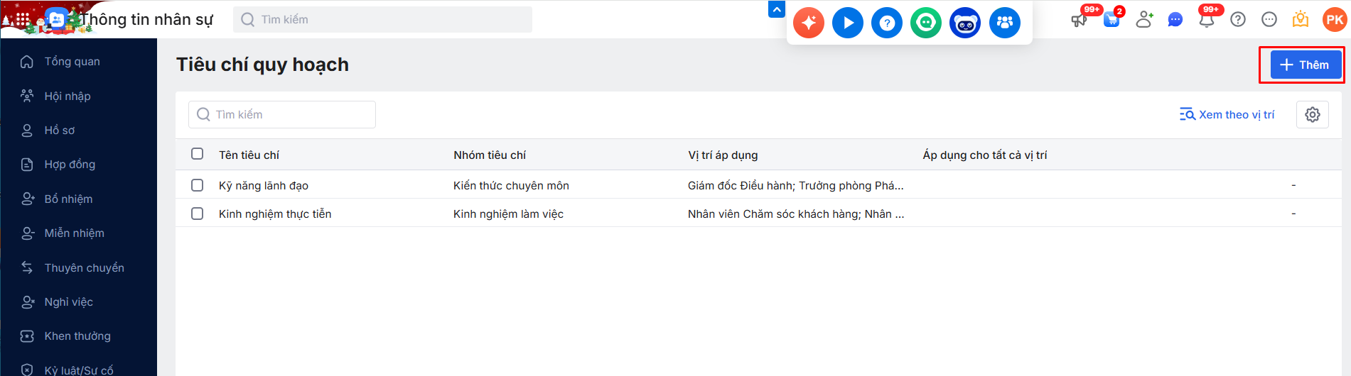 Bước 1: Tại phần mềm thông tin nhân sự, truy cập phân hệ Thiết lập\Tiêu chí quy hoạch.