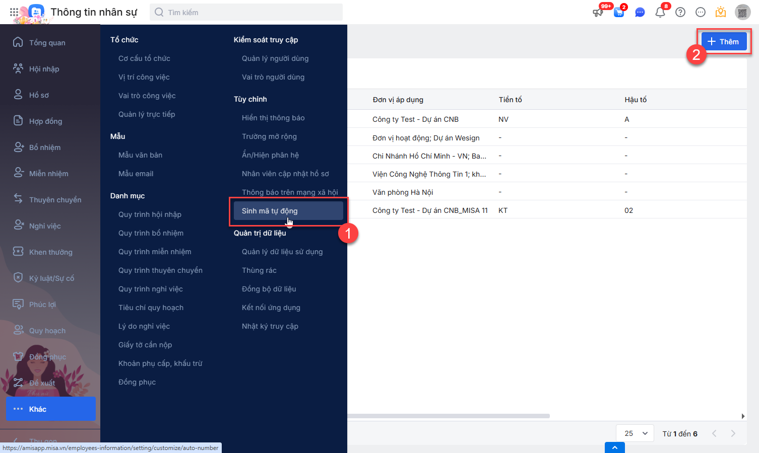 Tại Thiết lập\Sinh mã tự động\nhấn Thêm.