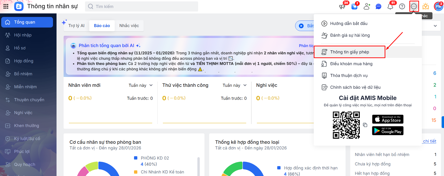 Bước 1: Trên phần mềm AMIS Thông tin nhân sự\ Nhấn vào biểu tượng ba chấm