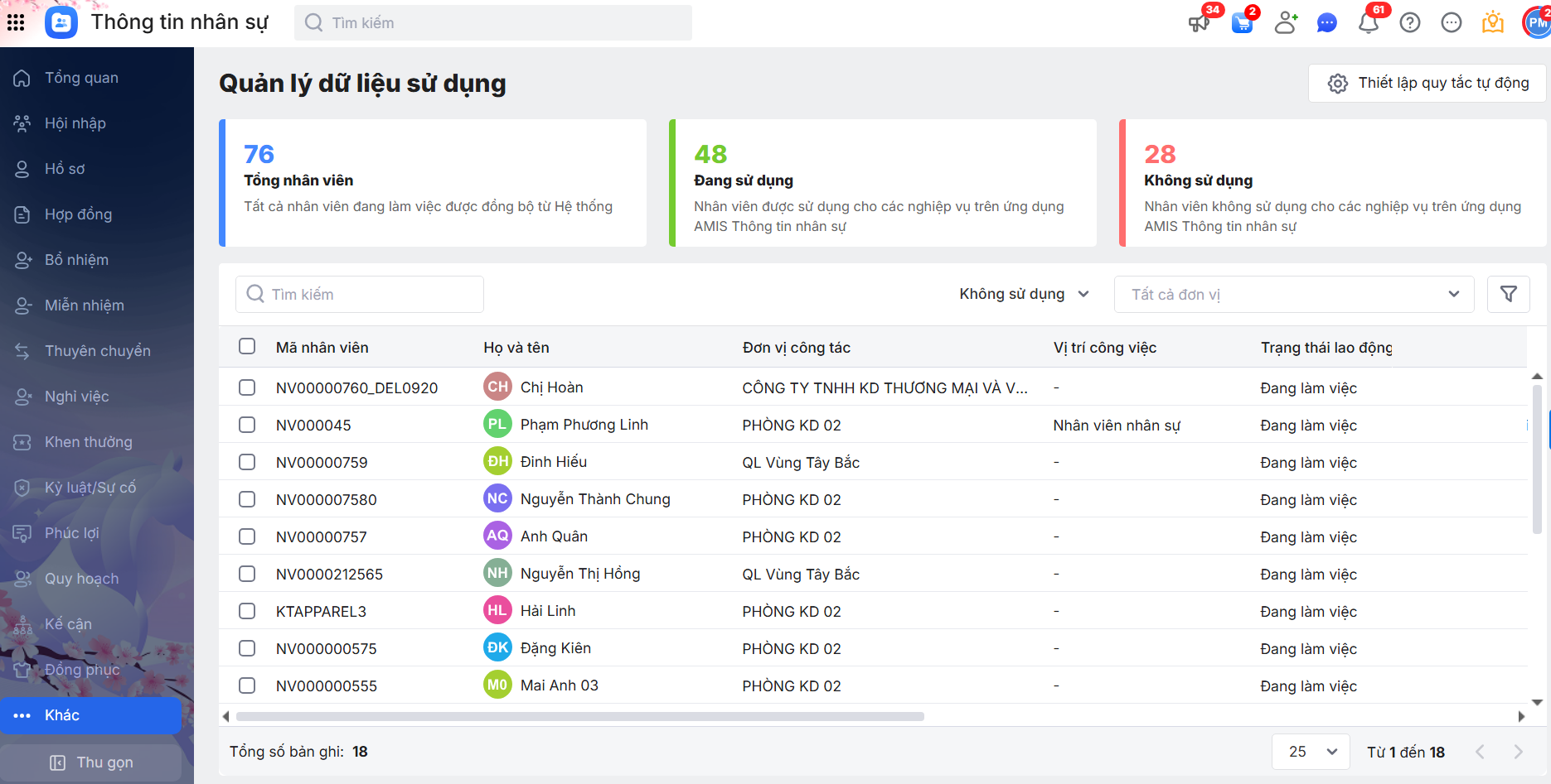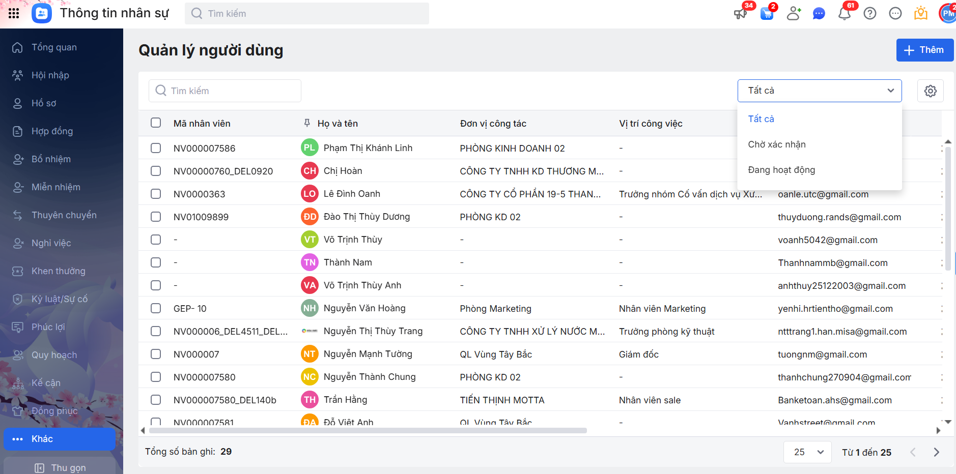 - Số lượng hồ sơ nhân viên: