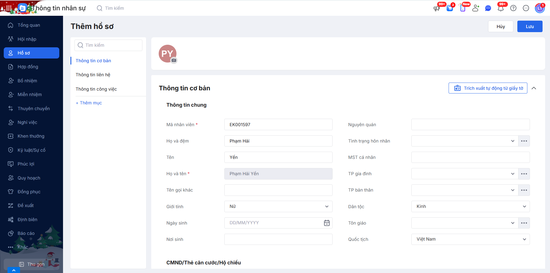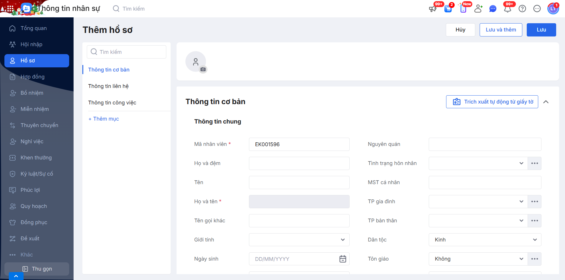 Sử dụng khi chỉ có một hoặc một số ít hồ sơ nhân viên cần nhập mới và số lượng thông tin quản lý trên hồ sơ không quá nhiều.