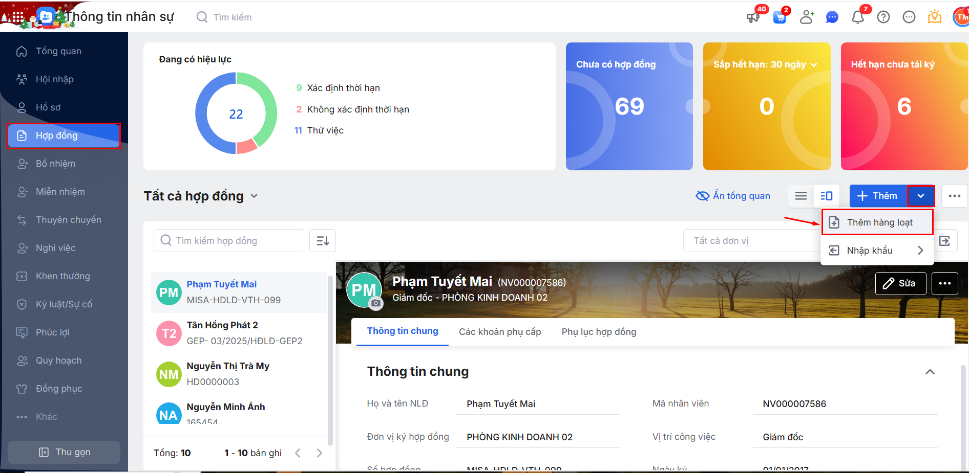 • Cách thêm hợp đồng hàng loạt trên phân hệ Hợp đồng.