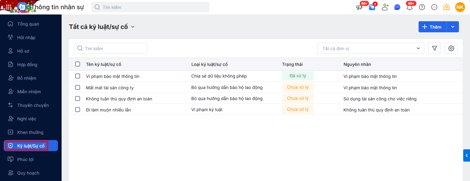 2.2. Quản lý danh sách Kỷ luật/Sự cố