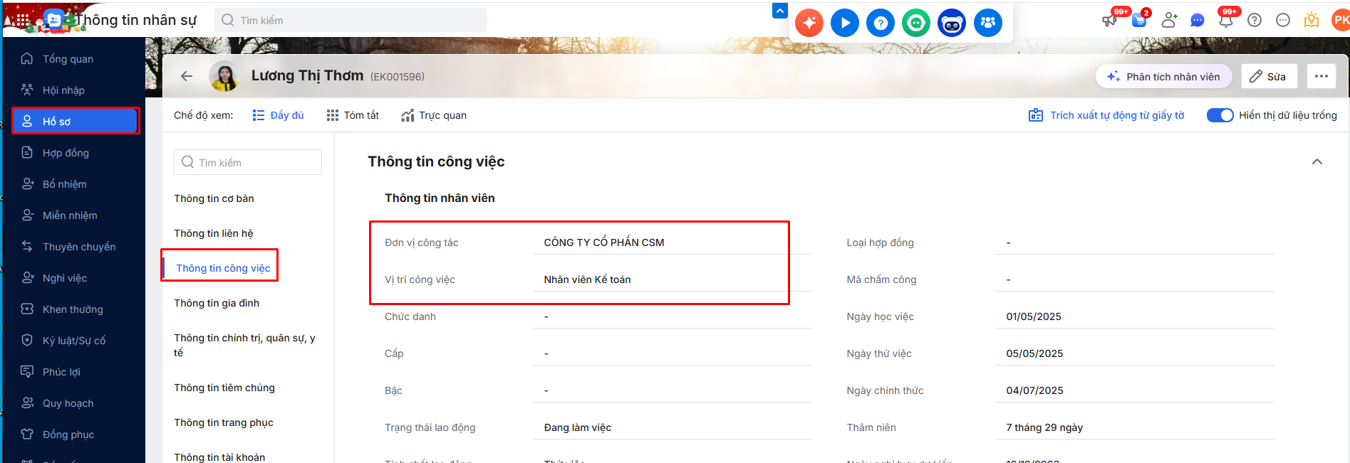 • Cách quản lý hồ sơ nhân viên có nhiều vị trí công việc (vị trí chính và vị trí kiêm nhiệm).