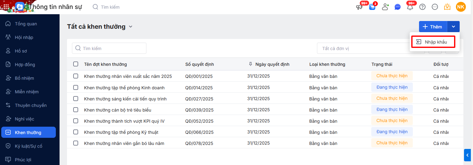 Nhập khẩu danh sách khen thưởng