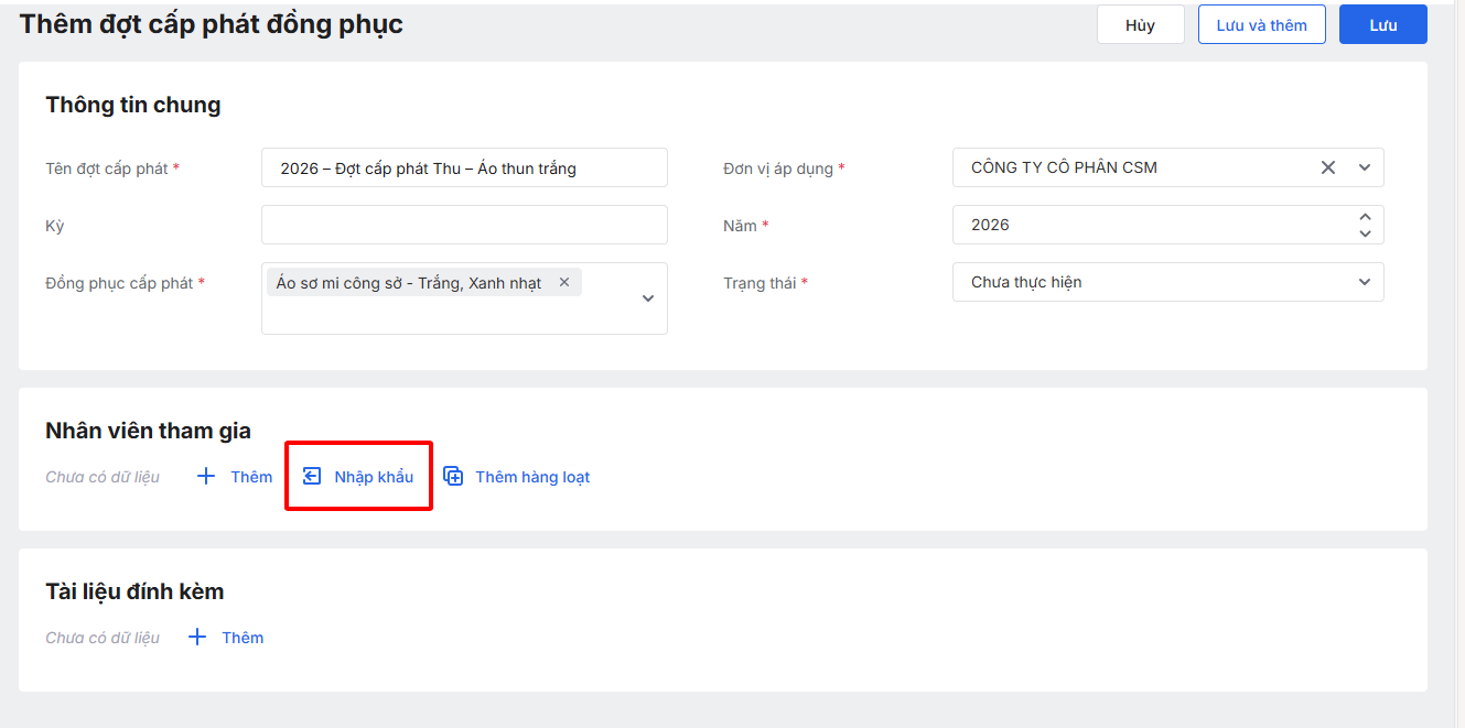 Bước 2: Nhấn Thêm để thêm các đợt cấp phát.