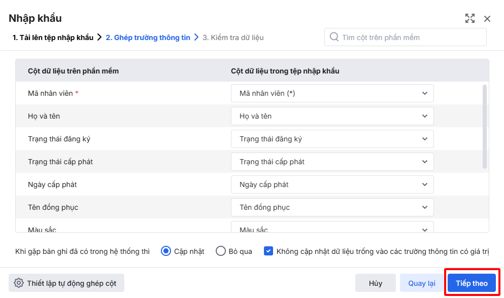 Bước 8: Ghép trường thông tin – Nhấn Tiếp theo