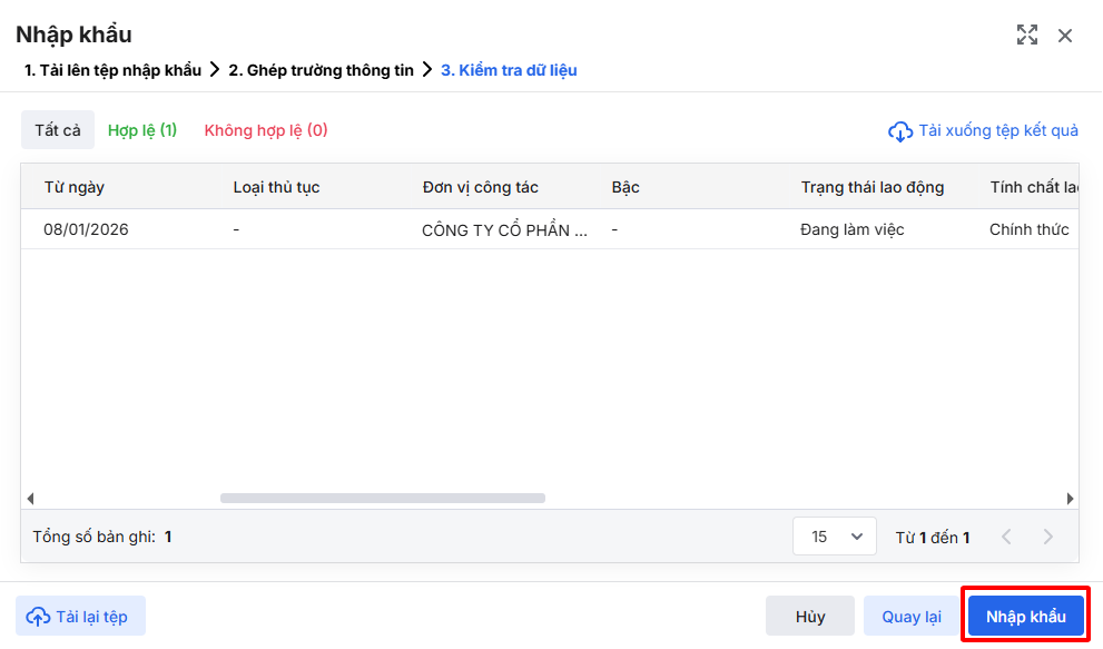 Bước 6: Kiểm tra kết quả. Nhấn Nhập khẩu để hoàn tất