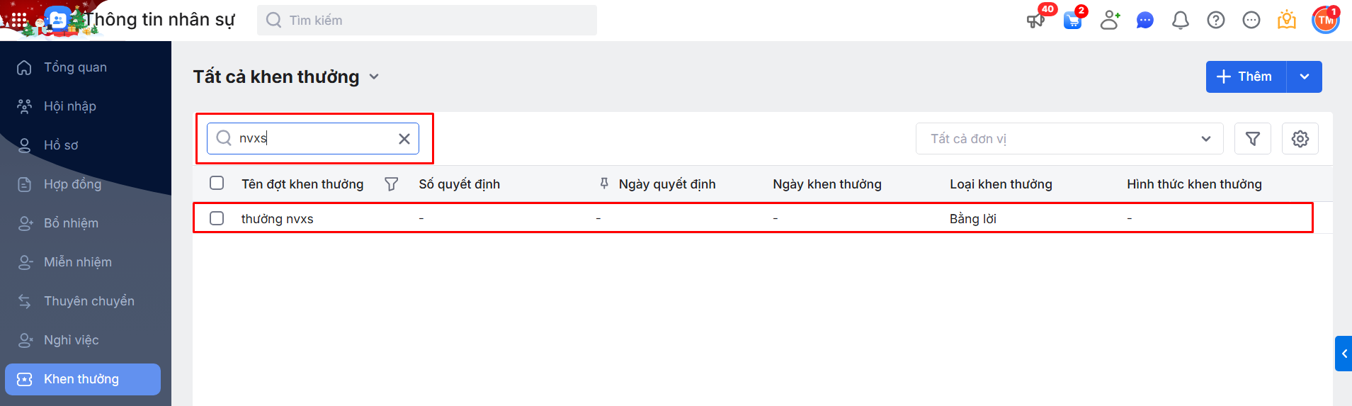 2.1. Tìm kiếm các đợt Khen thưởng nhân viên