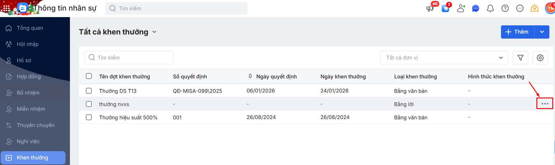 Bước 1: Di chuột vào đợt Khen thưởng cần sửa nhấn vào dấu ba chấm
