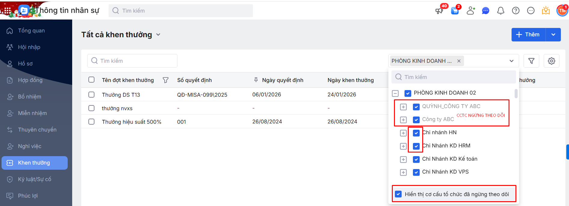 2.2.1. Lọc danh sách đợt Khen thưởng theo cơ cấu tổ chức