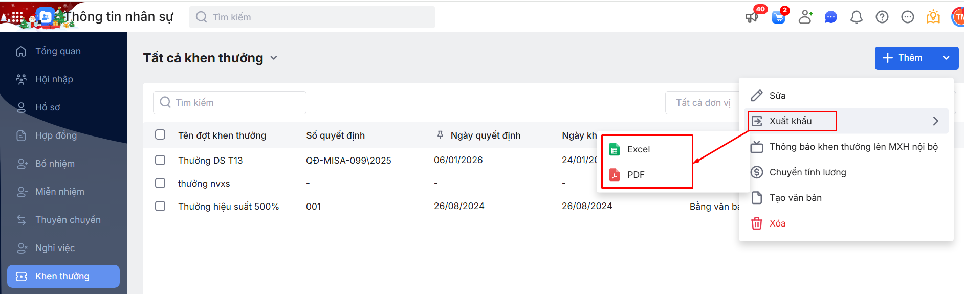 2.3. Xuất khẩu danh sách đợt Khen thưởng nhân viên