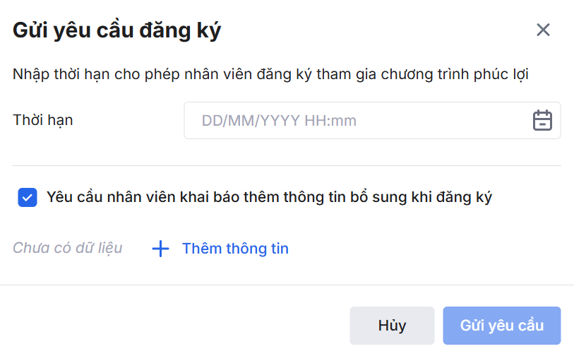 Bước 2: Khai báo Thời hạn cho phép nhân viên đăng ký tham gia chương trình phục lợi