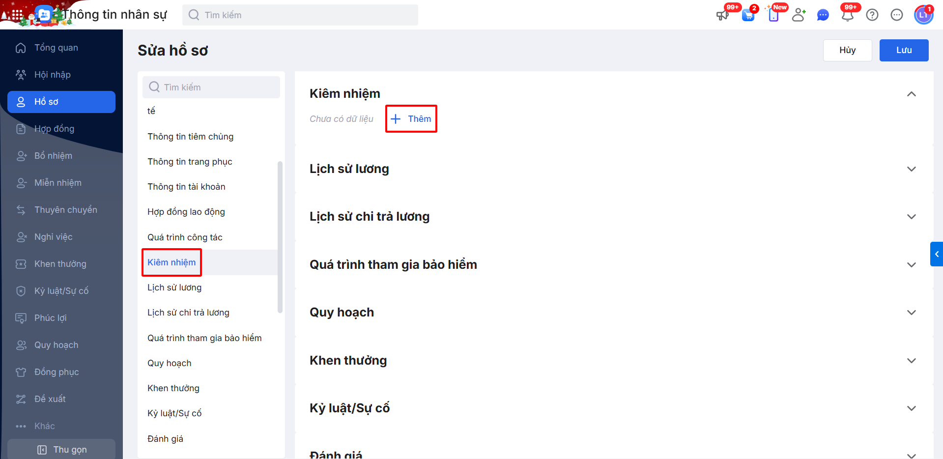 Bước 2: Kéo xuống mục Kiêm nhiệm \ nhấn Thêm