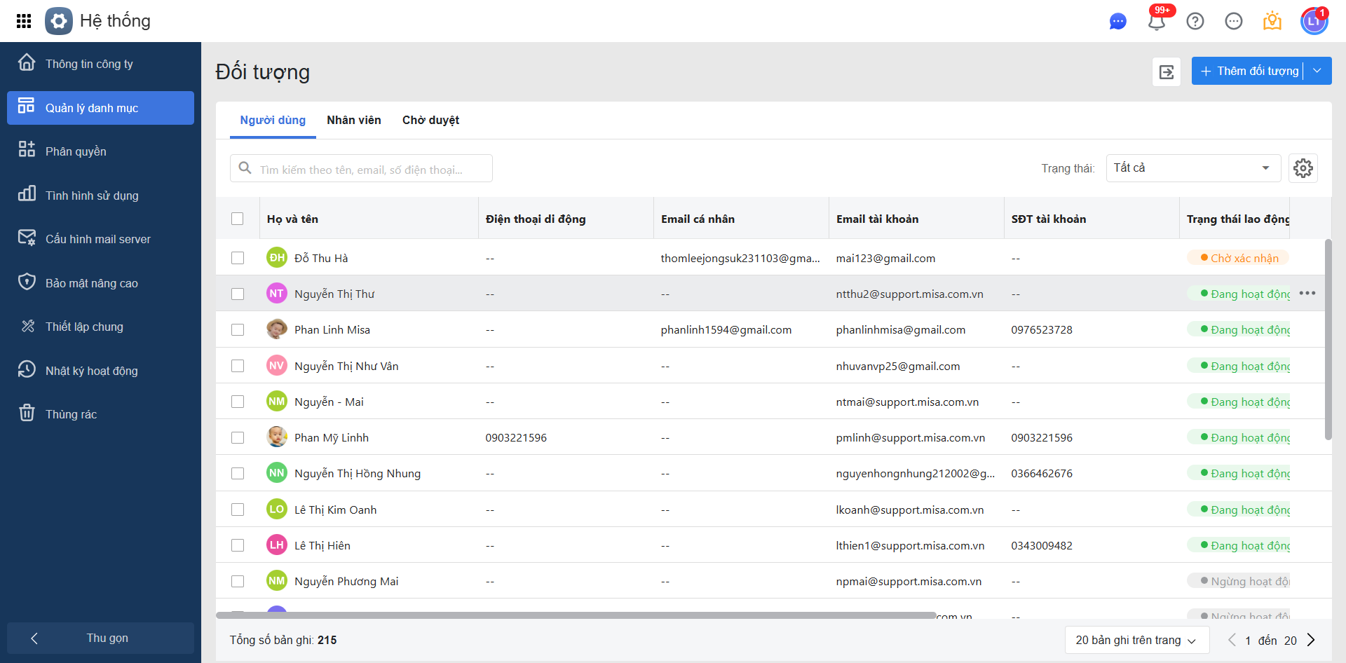 - Nếu “Người dùng” mới được thêm vào có “Số điện thoại” đã kích hoạt MISA ID thì “Người dùng” sẽ ở trạng thái Đang hoạt động.