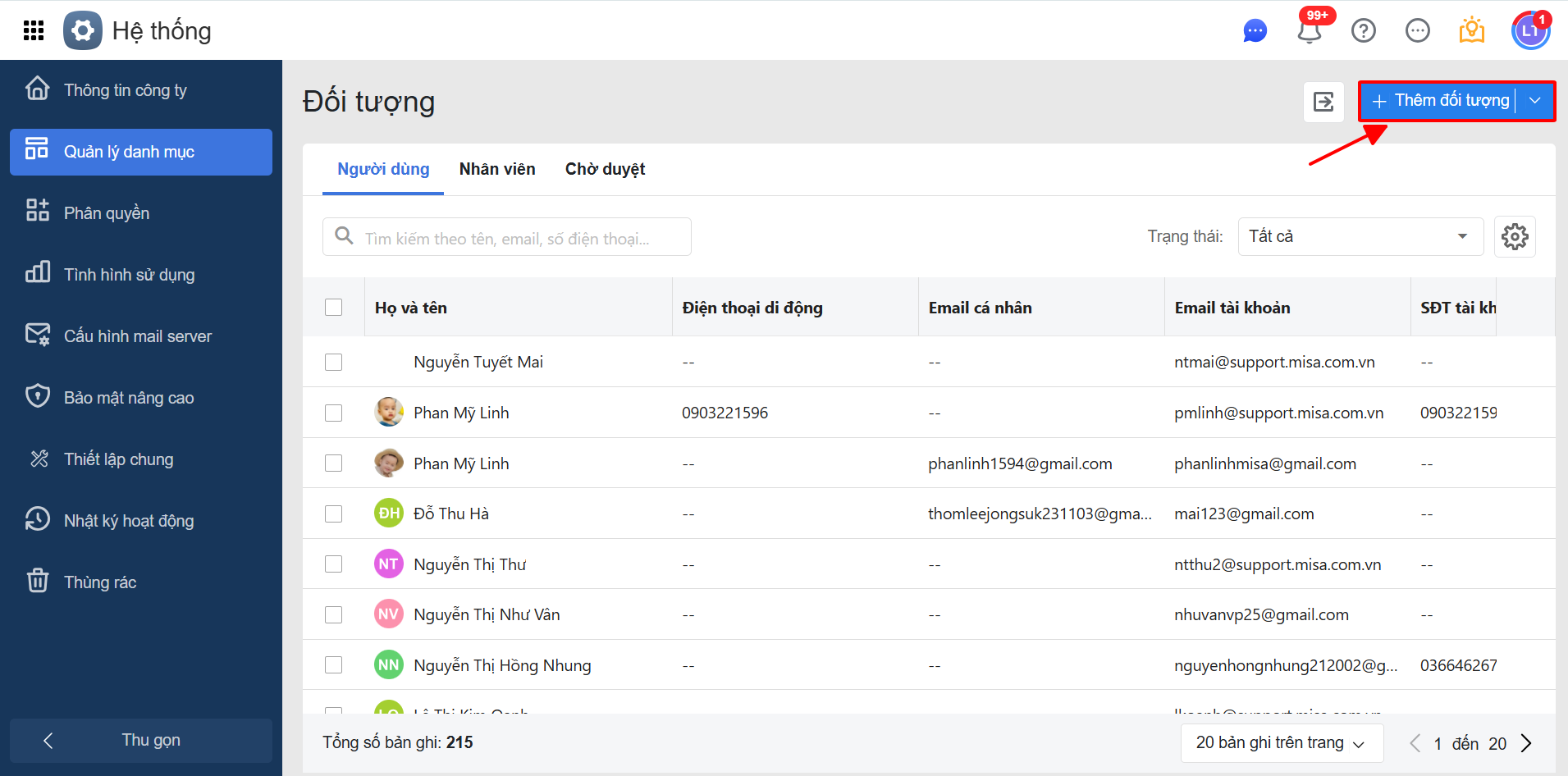 Bước 2: Trên danh sách Người dùng, nhấn Thêm đối tượng