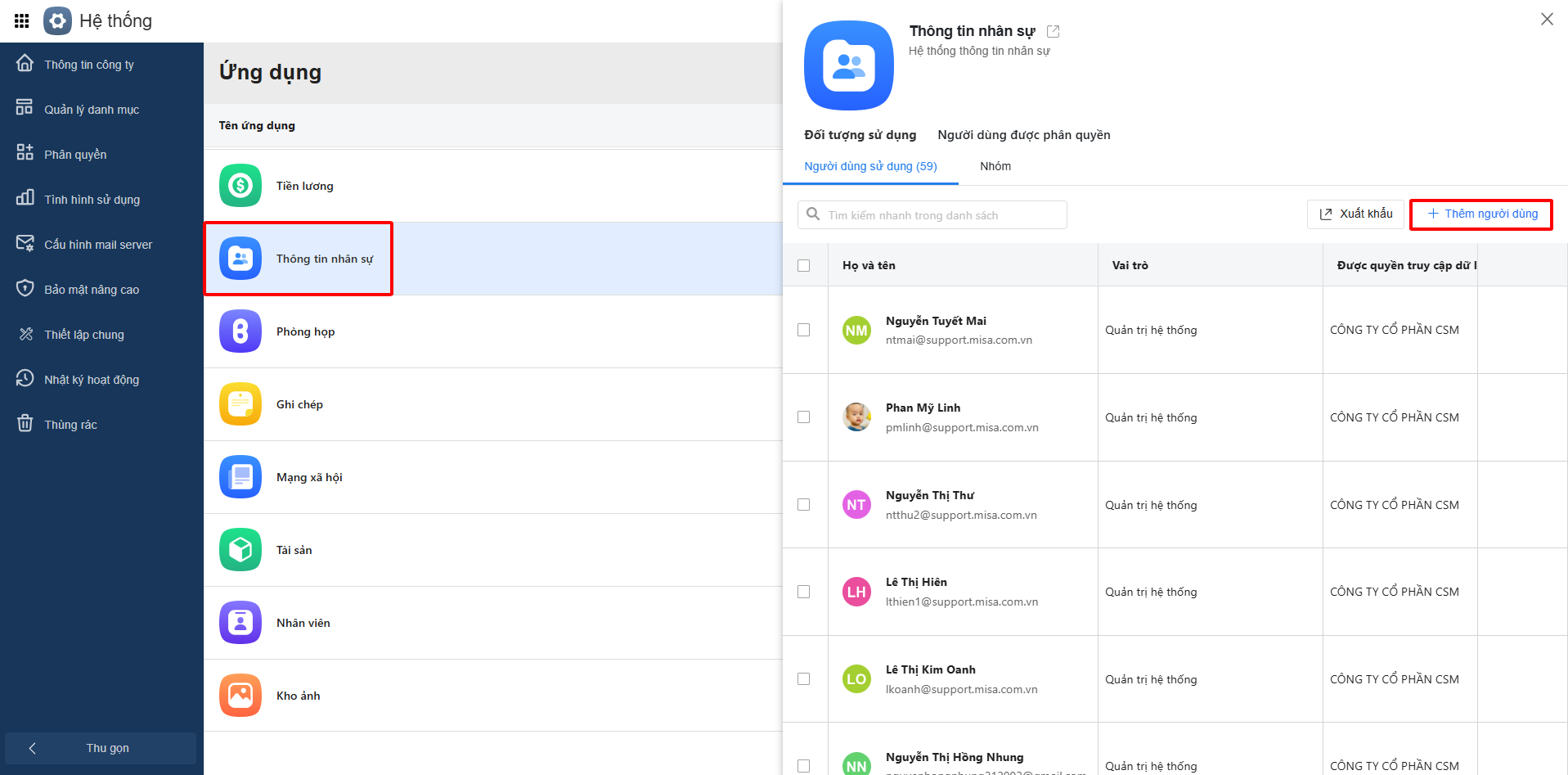 2.3. Thêm Người dùng vào Ứng dụng AMIS Thông tin nhân sự