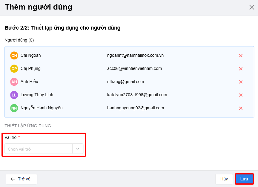 Bước 5: Nhấn Lưu, chương trình sẽ cho phép những người dùng này được phép truy cập vào ứng dụng.