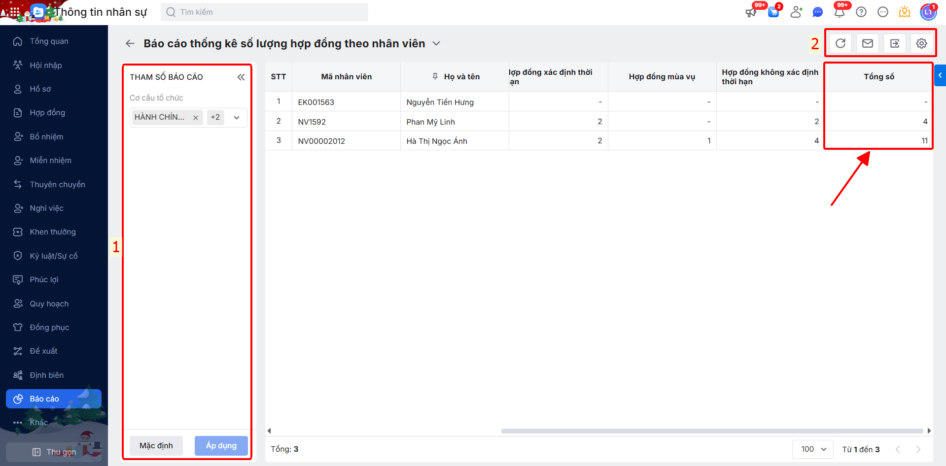 Bài viết hướng dẫn thống kê số lượng từng loại hợp đồng theo nhân viên để theo dõi, quản lý và đảm bảo tuân thủ quy định về số lần ký hợp đồng xác định thời hạn. Nội dung bao gồm cách truy cập và sử dụng báo cáo thống kê trong hệ thống.
