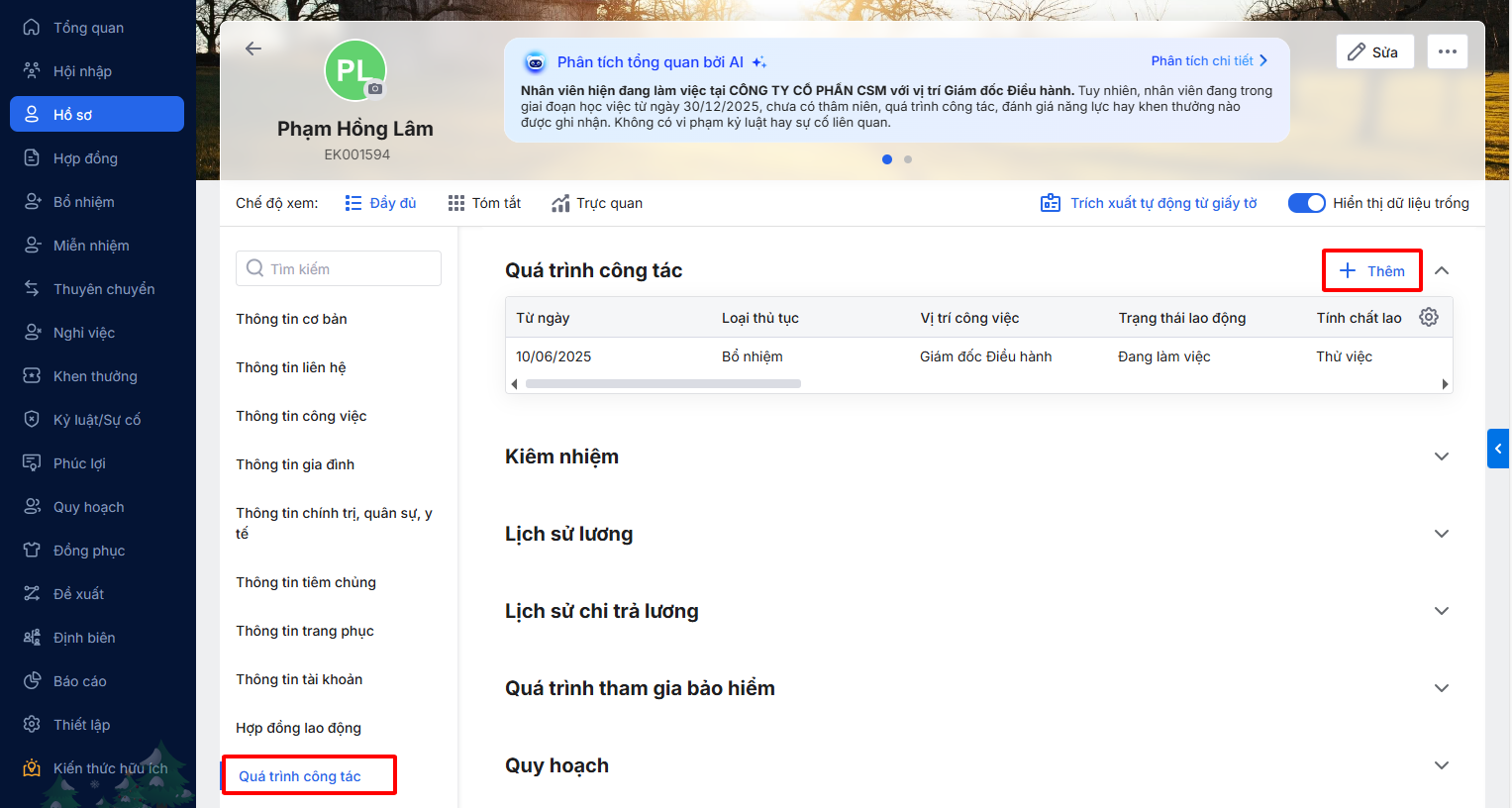 Bước 3: Tại mục Quá trình công tác, nhấn Thêm