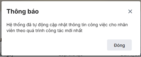 - Các thông tin mới trong quá trình công tác như đơn vị công tác, vị trí công việc, tính chất lao động, quản lý trực tiếp, … sẽ được tự động cập nhật tương ứng trong thông tin công việc