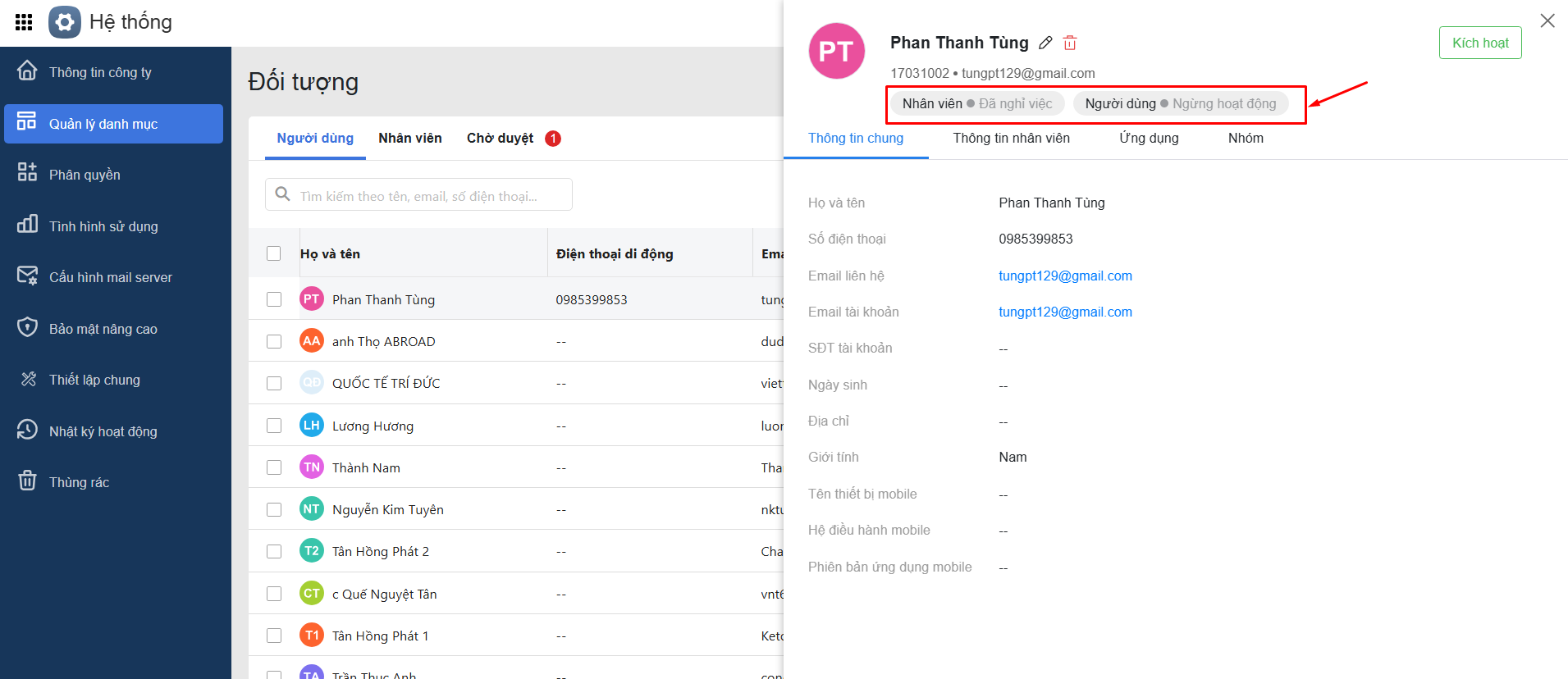 Bước 4: Phần mềm sẽ tự động cập nhật luôn trạng thái tài khoản về “Ngừng kích hoạt“\ Truy cập AMIS Hệ thống để kiểm tra.