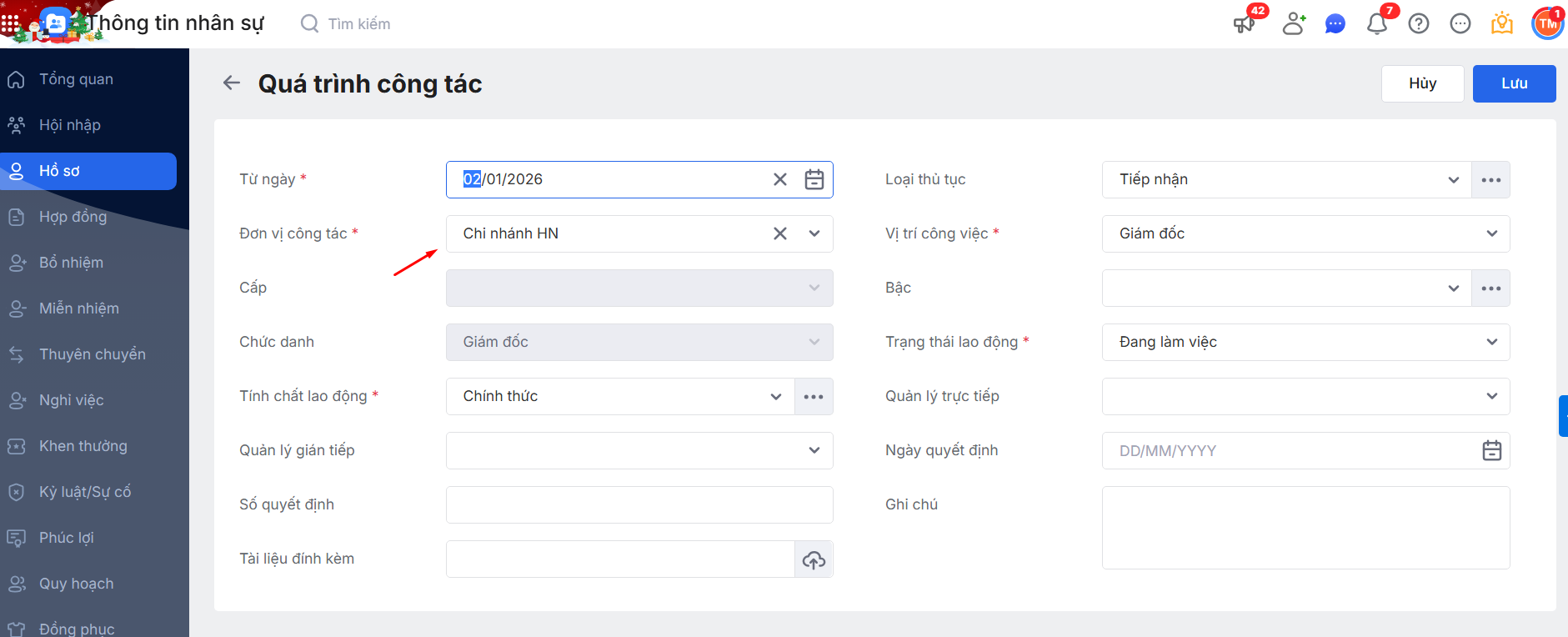 Bài viết hướng dẫn tính năng tạo mới/cập nhật quá trình công tác, lịch sử lương khi HR thay đổi Đơn vị công tác trên hồ sơ nhân viên. Nhờ đó, thông tin lương và công việc luôn chính xác, nhất quán, đồng thời giảm thao tác chỉnh sửa thủ công cho HR.