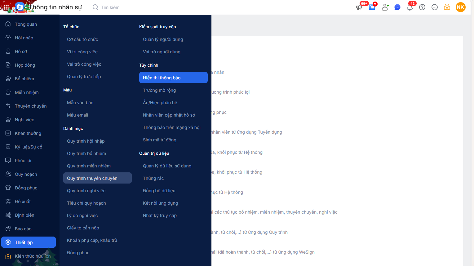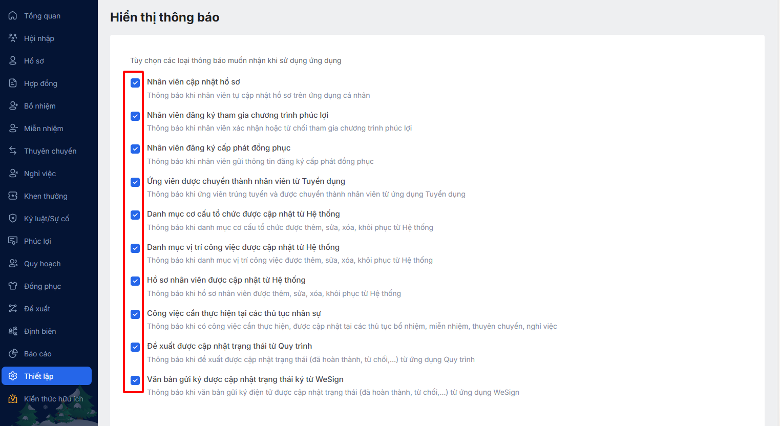 Bước 1: Trên AMIS Thông tin nhân sự, vào phân hệ Thiết lập\Hiển thị thông báo