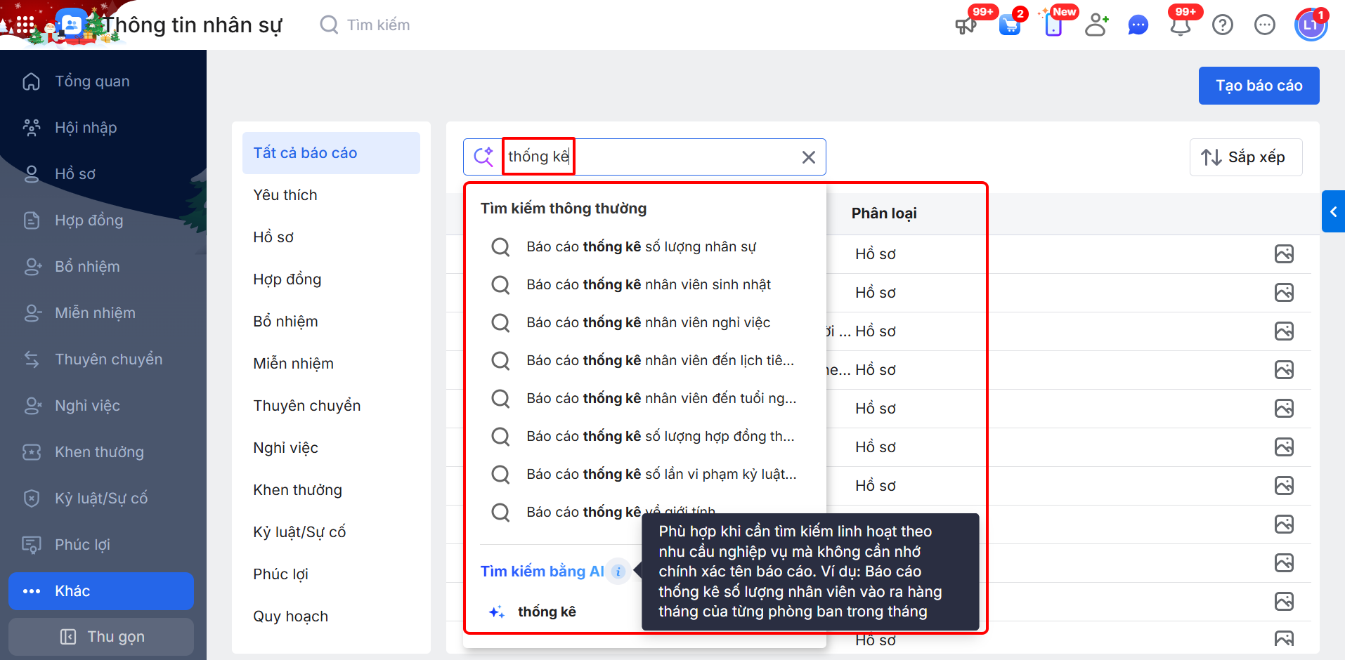 Bài viết hướng dẫn sử dụng AI để tìm kiếm nhanh báo cáo trong hệ thống. Nội dung bao gồm thao tác nhập từ khóa và nhận gợi ý báo cáo phù hợp. Phạm vi áp dụng cho các báo cáo trong danh mục hệ thống.