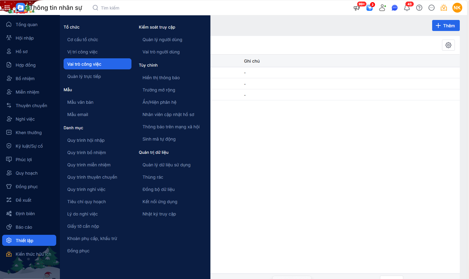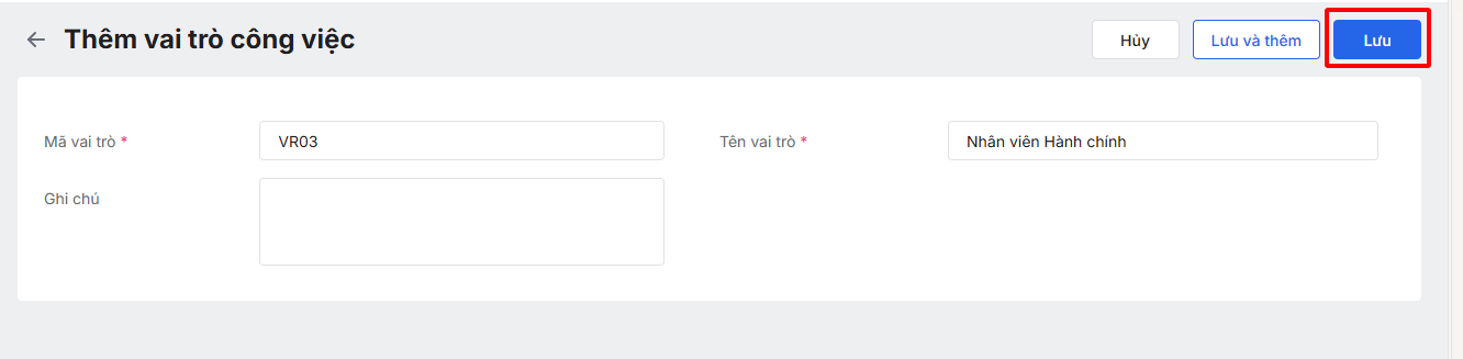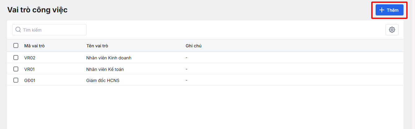 • Thêm mới Vai trò công việc