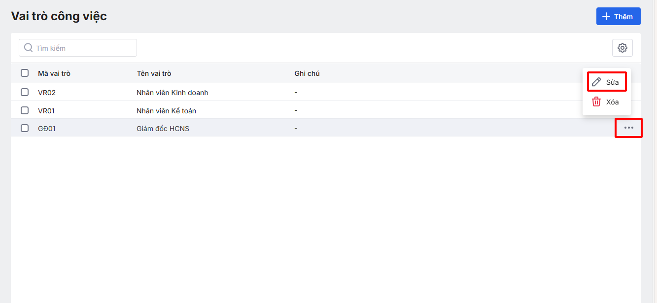 • Sửa Vai trò công việc