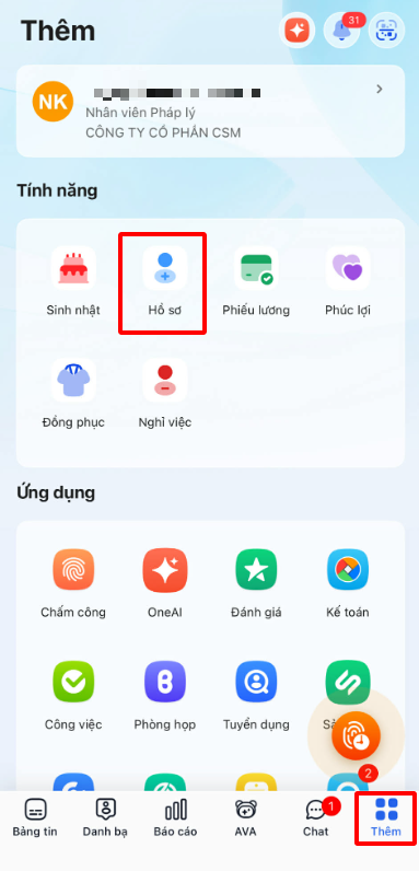 Bước 1: Trên ứng dụng MISA AMIS mobile, vào mục Thêm\Hồ sơ