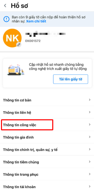 (Mobile) Xem khoản phụ cấp, khấu trừ trên điện thoại
